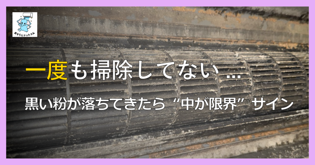 「ずっと掃除していない」「黒い粉・ホコリが落ちる」「空気が重く感じる」などは、 内部の汚れが進んでいるサインのことがあります。 気づいたタイミングで一度プロに見てもらうと安心です。